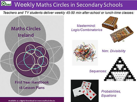 2nd and 3rd year junior cycle students also avail of a follow-up activity called Junior Maths Enrichment. In turn, this prepares prospective students for the Mathematics Enrichment programmes run across the country, which in turn could lead to participation in national and international mathematical olympiads. If you are a teacher, a parent or a student who is interested in running a Maths Circle/Math type activity for older junior or senior cycle students but are located too far away from any of our centres in Cork, Dublin, Limerick, Galway, Maynooth, then you may avail of some of our extensive enrichment materials. Feel free to contact us.
